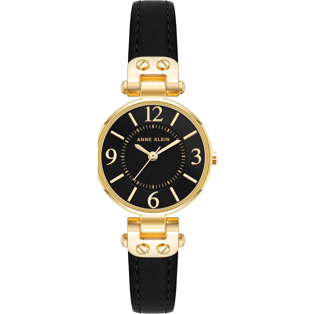 Women Watch Round Case Analog Dial Leather Strap, Gold/Black